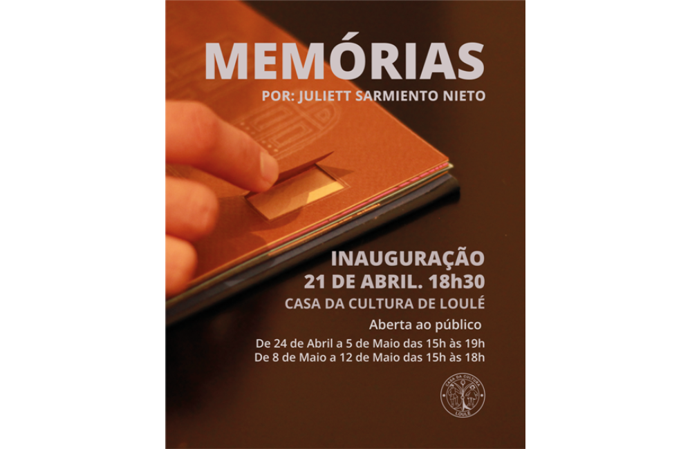 Memórias é uma exposição, que irá estar patente de 21 de abril a 12 de maio de 2023 no espaço da Casa da Cultura de Loulé, com uma série de livros de artista e instalações que convidam o espetador a fazer uma viagem que começa na Colômbia, país de origem da artista plástica Juliet...